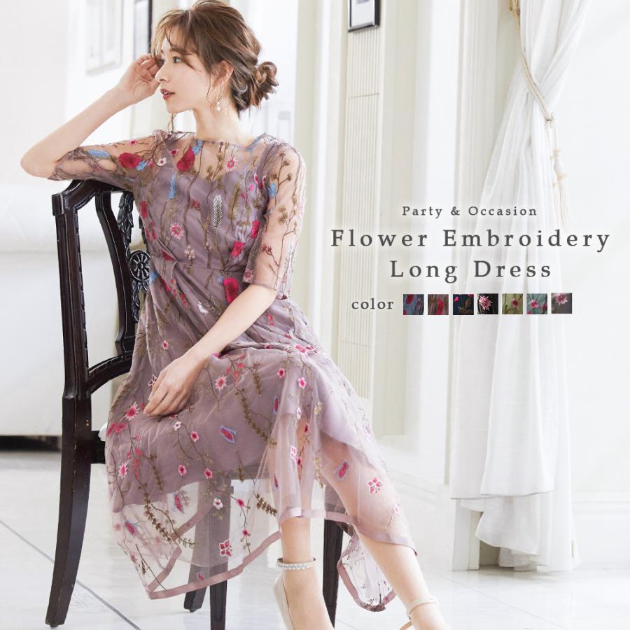 楽天市場 花柄刺繍入りシースルーワンピース 結婚式 ワンピース 結婚式 パーティードレス ドレス 入園式 発表会 ワンピ 二次会 パーティ セレブ 入学式 大人 上品 卒業式 One Piece Ol レディース ロング丈 長袖 Aライン 花柄 刺繍 春 夏 秋 冬 Lideel リデール